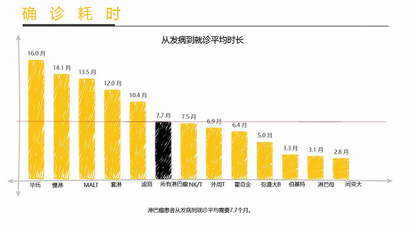 《2019年中国淋巴瘤患者生存状况白皮书》(下简称:《白皮书》)显示,在回收的4816份有效问卷里,2047个患者有过误诊经历,占到全部调查患者的43%,从发病到就诊平均时长为7.7个月,从初诊到确诊亚型平均时长为2.5个月。