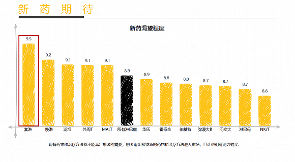 此次《白皮书》对患者最期待上市的免疫疗法、靶向药物调研结果显示,患者最期待的前五种包括CAR-T、新型BTK抑制剂、CD30单抗、本达莫司汀和第三代CD20单抗。其中套淋患者对新药的期待最为强烈。