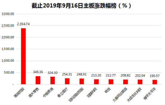 时间来到9月中旬,要说到目前为止港股整体的表现,那么不禁让人较为失望叹息,从年初至今恒生指数涨幅只有4.6%左右。但是淡市也可以蕴含巨大投资机会,我们来看看港交所主板股票至今的涨幅排名。观察上图可以看到,像排名第十的博彩股博华太平洋作为“小弟”有190%的涨幅。