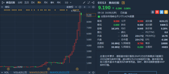 不仅如此,韦伯还发现雅高控股的前十大股东持股比例高达84%。港交所曾有规定上市公司大股东最大持股比例不得高于75%,原因就是为了避免市场流通股份过少,容易导致股份价格的大幅波动。事实上,在9月11日雅高控股盘中就一度出现瞬间股价跳水36%的情况。