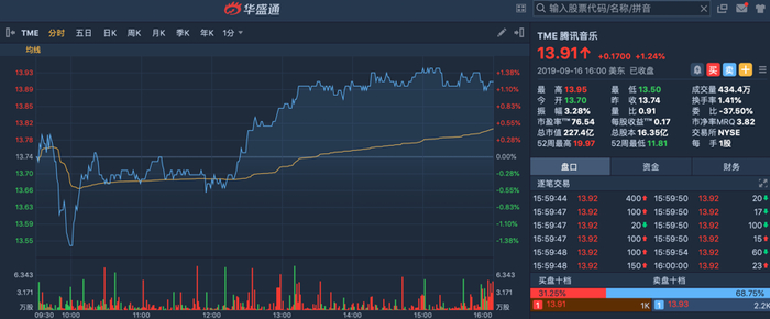 腾讯音乐(TME)旗下的三家平台,即QQ音乐、酷狗音乐和酷我音乐参与了此次数字专辑的独家分销。据悉,新专辑《说好不哭》在中国大陆地区属于腾讯音乐集团独家所有。新专辑发布后,腾讯音乐股价盘中上涨并一路走高。9月16日收盘,腾讯音乐上涨1.24%,报13.91美元每股。