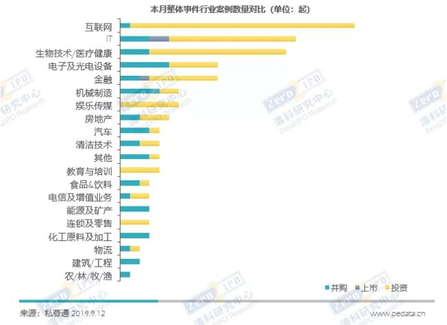 ›本月互联网、IT、生物技术/医疗健康行业的投资事件较多。数据来源:清科私募通