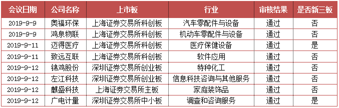上周,共有8家企业经发审会审核,8家均通过通过审核。