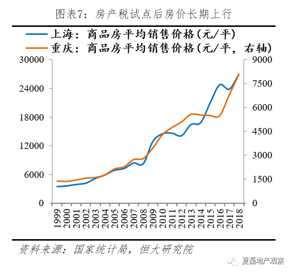沪渝试点效果有限的主要原因:一是征税范围窄、税率偏低。征税范围上,上海不涉及存量房,重庆虽包括存量房,但只针对高档住房;税率上,上海是0.4%和0.6%,重庆是0.5%、1%和1.2%。二是沪渝等城市房价上涨的背后是住房供给不足。上海和重庆2010年套户比分别为0.93、0.98,2018年分别为0.93、1.01,两地房地产市场整体上一直处于供给不足的状态。随着城镇化不断推进,人口向大城市集聚的趋势愈加明显,对于住房需求旺盛的大城市来说,房产税难以起到房价调控作用。