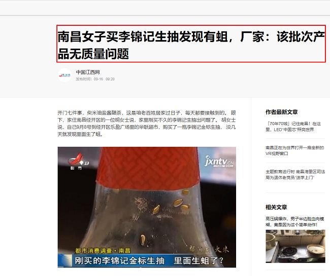 频频出现活蛆,李锦记生抽的“零缺陷严苛自律”