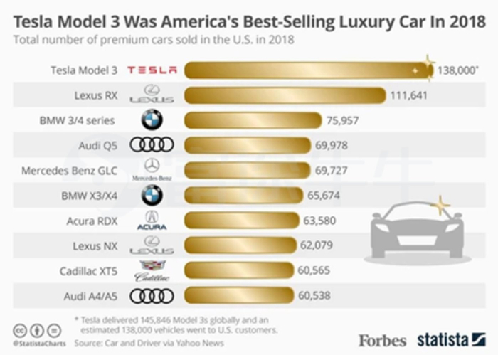 特斯拉的情况是需要不断降低价格来刺激需求,所以Model 3本质上不属于平价产品,也并不属于大众市场,我更觉得它的可寻址市场是在豪车领域,那么特斯拉或许该定位为一家豪华车制造商。过去一年,特斯拉不断拿来和Model 3比较的也一直是豪华品牌。
