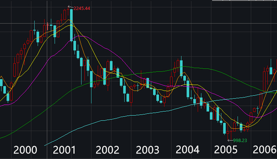 然而,从2004年6月到2005年10月,A股从1500点跌到1000点,达到最近二十年的最低点。