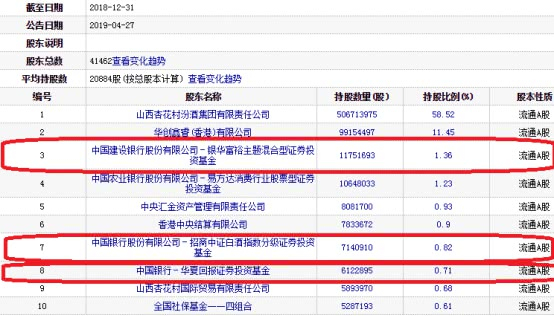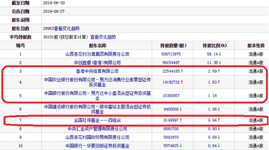 截至2019年6月30日,山西汾酒的主要股东(前十大股东)中,与2018年12月31日相比,有4家股东选择增持(新增持1家),有3家股东进行了减持(退出十大股东1家),有4家股东持股不变。