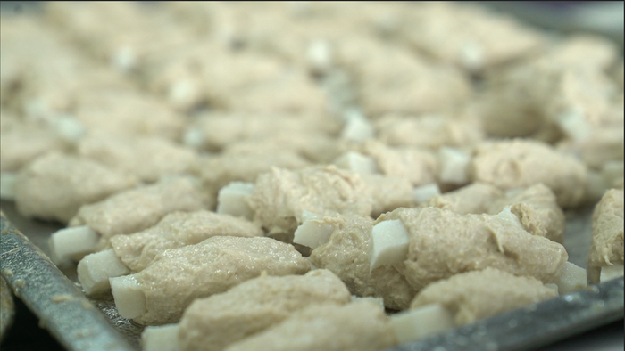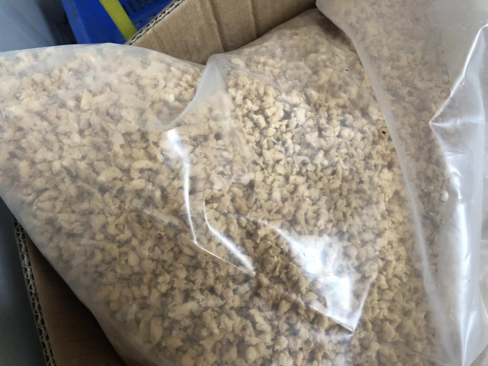 齐善工厂内的植物肉原料:大豆蛋白块