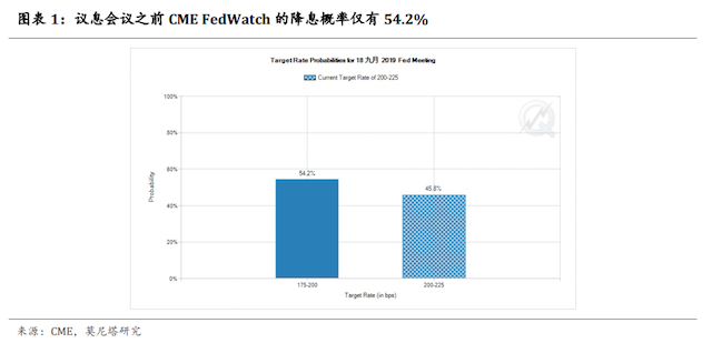 在本次议息会议之前,芝加哥商业交易所(CME)的FedWatch Tool计算的降息概率仅有54.2%(图表1)。我们在此前多次强调,金融市场的预期是促使美联储降息的最重要原因。既然此次降息预期已经降至了54.2%,那么美联储为什么还要继续降息呢?