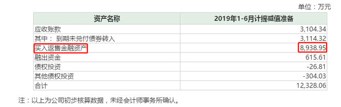 华安证券表示,该笔业务股票质押式回购合约本金为人民币2.22亿元。在待购回期间,标的证券刚泰控股股价持续下跌并跌破最低履约保障比例(即平仓线)140%,且低于平仓线后未及时补足质押物构成违约。根据公司相关会计政策,该笔股票质押回购属于单项金额重大的金融资产,应当单独进行减值测试,经测算,2019年1-6月计提减值准备。8819.34万元。
