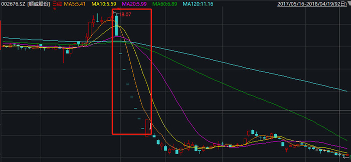 实际上,在蒋九明2017年6月20日支付利息之后,顺威股份的股价就开始出现闪崩。2017年6月29日早盘,顺威股份以17.75元/股的平盘价开盘,但在上午10时半左右股价突然遭遇断崖式跌停。6月30日早间开盘前,顺威股份临时停牌,此后便是长达半年的停牌。在对外发布的重大事项停牌公告中,顺威股份表示正在筹划购买资产事项,对外投资方向为塑料制品产业链相关的企业,以现金收购,预计交易金额为2亿元到3亿元。2018年1月16日,该公司复牌,直接连续七天被封在跌停板上。