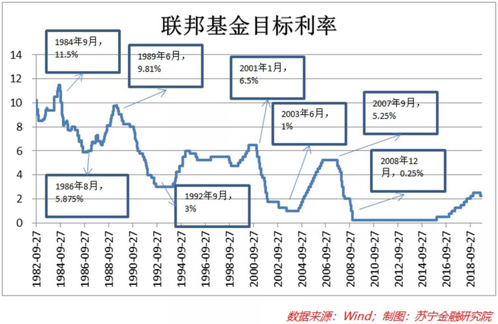 上文的分析均是基于美联储大幅度的持续降息,但值得注意的是,当前美国的经济状况并没有出现明显的恶化,本次降息的市场共识是预防式降息,与1995年7月所对应的原因相同:均为经济活动放缓,而1995年的降息幅度很小,且是大的升息周期中的小幅回调,与当前的状况有相似之处;与此同时,当前降息起点是2.25%-2.5%,综合起来看未来的降息空间不大。