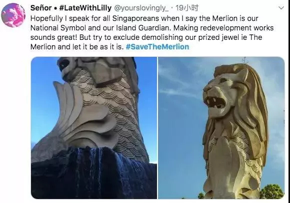 “鱼尾狮是我们国家的象征和岛屿的守护者,希望我说出了所有新加坡人的心声。重建工作听起来很棒!但请尽量避免拆除我们珍贵的东西,即鱼尾狮,让它那样矗立着吧。#拯救鱼尾狮”