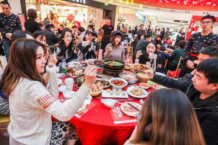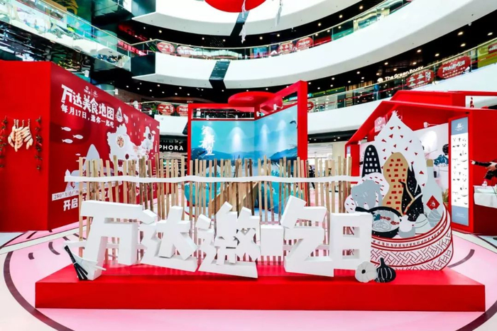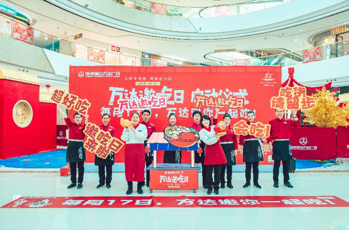 在美食场景,万达广场每月17日还以餐饮业态为主打造自有超级IP“万达邀吃日”。“万达邀吃日”通过万达广场小程序覆盖了西贝莜面村、旺顺阁与汉拿山等近7000家餐饮品牌,在线上保持营销统一并持续精准导流,在线下则根据广场所在地消费特征,结合34个地域菜系演绎个性化活动。如:北京通州万达广场的“风味人间快闪店”、上海五角场万达广场的“免费美食品鉴盛宴”、以及石家庄裕华万达广场的“大胃王挑战赛”等,都将娱乐体验及互动融入现场活动。