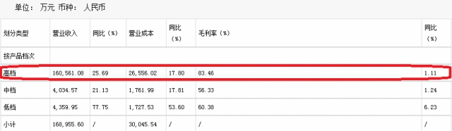 发布半年报当日,水井坊发布了《半年度经营数据公告》,公告显示,水井坊主要营业收入来源为高档产品,上半年实现16.06亿元,同比增长25.69%,毛利率高达83.46%。