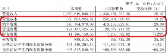 截至2019年上半年末,水井坊营业成本实现3.01亿元,同比上涨26.47%,报告称系本期核心产品销量增长,导致成本相应增加;销售费用5.41亿元,同比上涨29.00%,报告称主要系为强化品牌知名度及进行新品推广,增加有效的电视和户外广告、节庆促销以及核心门店、品鉴会等投入所致;管理费用1.27亿元,同比下降0.74%;财务费用-1118.62万元,主要系银行存款平均余额增加导致利息收入的增加。