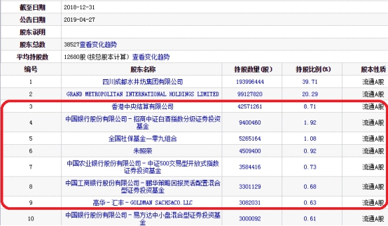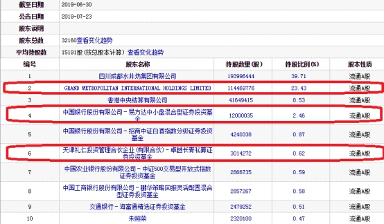 截至2019年6月30日,水井坊的主要股东(前十大股东)中,与2018年12月31日相比,有3家股东选择增持(新增持1家),有5家股东进行了减持,有1家股东持股不变,有2家股东退出十大股东名列。