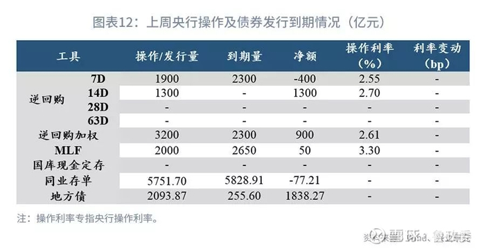 上周央行公开市场操作实现净投放250亿元(如图表12);截止上周末