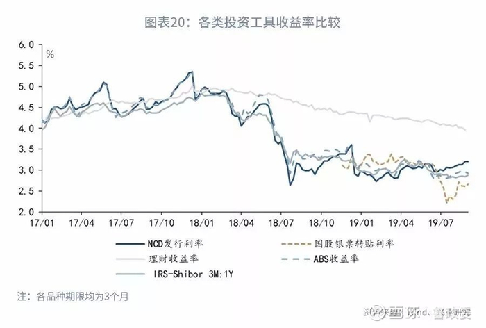 全市场3个月理财产品收益率下跌0.1bp至4.02%;利率互换方面(图表27)