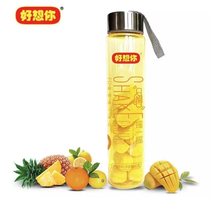 据了解,“摇一摇”运用的水果是江西香橙、海南芒果、四川柠檬、广东菠萝以及云南橘子,经过实验室研究确定水果原料进行科学配比,同时还添加了益生菌,历经4小时冷冻、16小时真空干燥成型,以求最大限度保留水果当中天然的营养以及鲜果风味。