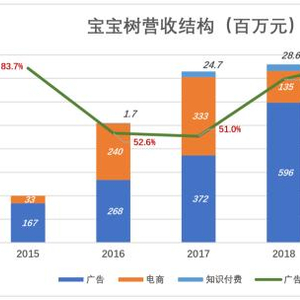 2016年、2017年,宝宝树广告收入占比分别为52.6%、51%。电商业务隐约有后来居上的势头。