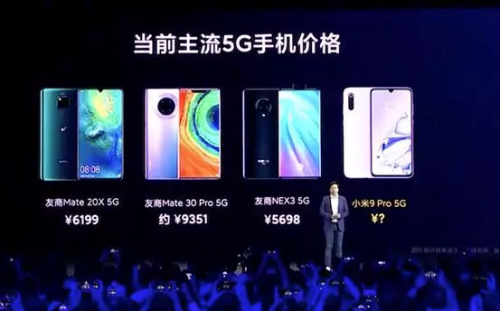 雷军在发布会上对比当前主流5G手机价格时展示了友商的Mate 20X 5G、Mate 30 Pro 5G、和NEX3 5G,价格均在5000元以上。而在此前,vivo旗下的iQOO Pro 5G曾以3798元打破5G手机低价纪录。