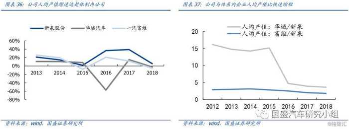 我们认为,公司未来将持续保持优势。公司的成本管控始终处于改进中,2012-2017年,公司的人均产值复合增速居于内饰件公司首位,成本管控能力持续提升。