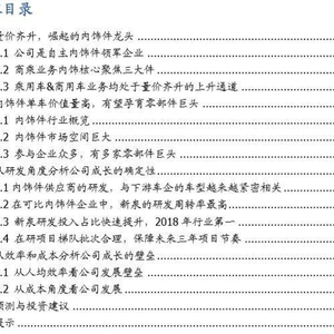 风险提示:配套车型改款切入失败、车型销量低预期;原材料价格波动;汽车整体板块性销量下滑。