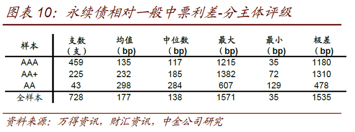 (2)在机构加大对收益率尚可资产的挖掘力度、存在拉长久期倾向的背景下,永续债可能成为部分投资者博取相对价值的品种。在债券收益率整体已累积下行较大幅度的情况下,机构可能加大对市场上收益率尚可的资产的挖掘力度。三季度市场已经出现了较为明显的拉长久期现象,永续债作为一种潜在久期更长、而且收益率相对同评级非永续债券存在一定溢价空间的资产,可能成为部分投资者博取相对价值的品种。