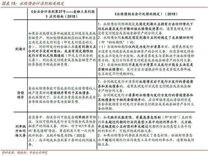在上述准则的基础上,19年1月28日财政部又专门印发了《永续债相关会计处理的规定》(财会〔2019〕2号)(“会计新规”),对永续债的股债性认定进行了更明确的说明。