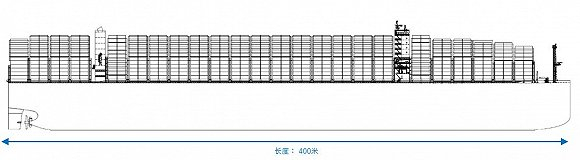 这艘船是世界上第一艘如此大规模的LNG动力船,船身长400米,宽61米,高78 米,最大载货容量为23112 TEU,船身的燃料仓将容纳最多18600立方米的LNG。