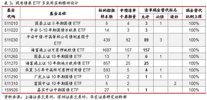 实物赎回模式下债券ETF退出渠道受限。基金合同生效后的开放申赎阶段,现有债券ETF的申赎清单中仅有少部分个券的现金替代标志为“必须”or“退补”,多数申赎清单中的个券均为“允许”现金替代标志,且现有债券ETF的现金替代比例均设置为100%,即投资者可以采用全现金替代模式申购债券ETF。值得注意的是,“允许”现金替代指申购时可以采用现金替代,赎回时则必须以现券组合方式,因而投资者在赎回债券ETF时往往会得到一篮子现券(富国中证10年期国债ETF除外)。如前所述,交易所债券市场成交并不活跃,买卖均面临较大冲击成本,投资者在赎回一篮子现券后往往难以变现,退出障碍一定程度上限制了债券ETF的发展。