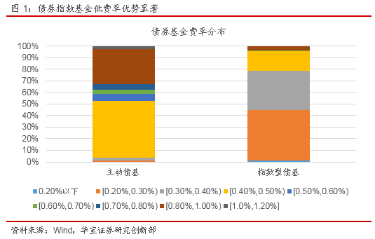 1)费率低廉:从管理费和托管费来看,近80%债券指数基金的合计年费率水平在0.40%以下,最高不超过1%;而95%以上的主动管理型债券基金合计年费率水平在0.40%及以上,最高费率达到1.20%/年。