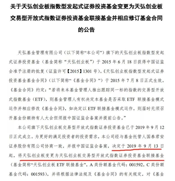 其实大家可以看看基金公司也在不断布局创业板,天弘基金发布“国民ETF”品牌以后,没有先推出沪深300和中证500的ETF,而是先推出创业板ETF,加上原来天弘基金创业板指数基金转变成天弘创业板ETF联接基金,联接基金未来主要资产是持有天弘创业板ETF159977。