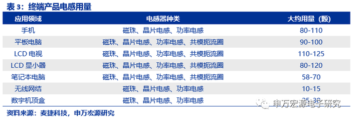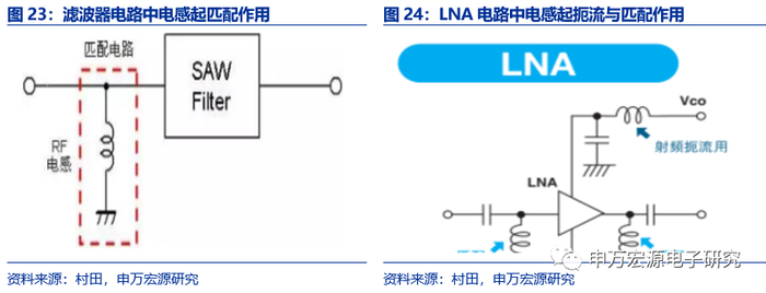 电感是射频器件必不可少的被动元件,需求量将随射频器件用量同步增加。PA、滤波器、双工器、LNA等射频器件的外围电路中通常都需要配上适用的电感来起到匹配和扼流的作用,以此来稳定电路振荡和改善信号质量。因此,电感需求用量亦将有大幅提升。