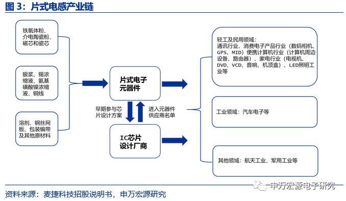 原材料成本占比约40%,小型化趋势下原材料用量进一步减少。电感上游原材料主要为银浆、铁氧体粉、介电陶瓷粉、磁芯、导线等。陶瓷粉料在初期主要依赖于进口,目前国产化程度已大幅提升,高端铁氧体粉目前仍依赖进口。下游应用主要是通讯、电脑、消费电子、小家电、卫星通讯以及汽车电子等领域的终端产品。通常来说,下游客户具有一定的认证周期,认证后一般会保持长期稳定的合作关系。