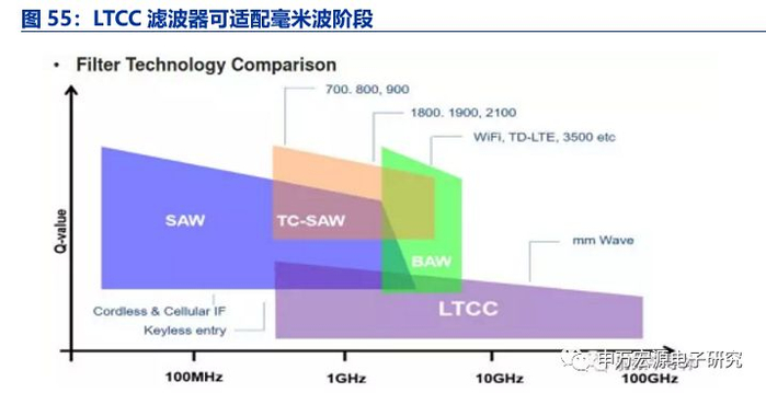 5G时代LTCC大有可为。随着5G对于高频高速器件的需求提升,以及射频器件用量大幅增加下倒逼模块集成化需求,LTCC预计将成为5G时代射频模块的主流方案。以手机用滤波器为例,目前中低端机以BAW为主,高端机采用SAW居多。5G初期 sub 6Ghz阶段,SAW滤波器无法适用,需要采用TC-SAW以及BAW滤波器。但当进入毫米波阶段时,只有LTCC滤波器才能适用于对高频信号的处理。因此随着5G的持续推进,LTCC滤波器将逐步成为主流。