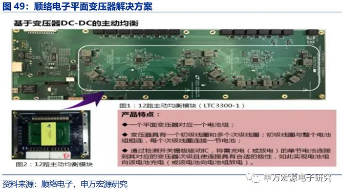 针对BMS系统的平面变压器解决方案旨在解决电池系统的痛点。电池芯技术,package技术,BMS技术组成了电池系统的三大核心。目前来说,BMS基本采用被动均衡技术,主要基于价格成本,种类和体积等方面的考虑,但是目前的续航又是电动汽车最大的瓶颈之一,采用主动式BMS方案是其中解决方案之一。