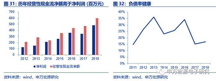 经营质量优异,现金流与净利润高度匹配,负债率保持低位。公司历年经营性现金流与净利润均高度匹配,且高于净利润,显示出优异的盈利质量。公司的负债率一直处于较为健康的水平,具备持续的造血能力,盈利的持续性得到充分保障。