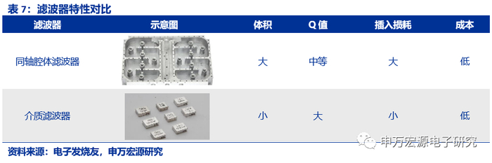 介质滤波器有望成为5G基站主流方案。4G基站的主要方案为金属同轴腔体滤波器,其原理为通过不同频率的电磁波在同轴腔体中振荡,达到滤波器谐振频率的电磁波得以保留,其余频率的电磁波则在振荡中耗散。而5G高频信号的快速衰减特性,有望使得具有体积小、Q值大、插入损号低、稳定性好、承受功率高特点的介质滤波器成为主流方案。