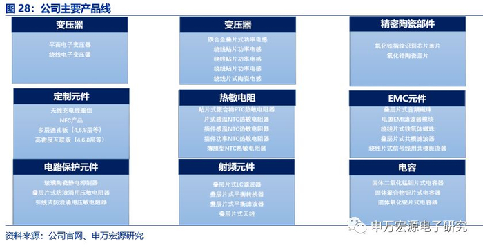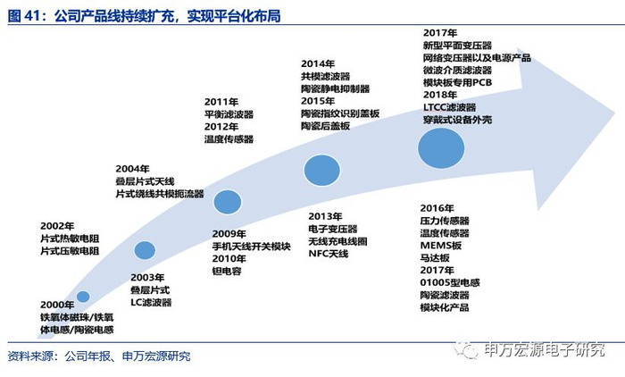 基于核心工艺横向拓宽产品线。公司基于片式电感的核心流程烧结工艺,逐步将产品线拓展至工艺流程相似的片式电阻、片式电容、片式滤波器、陶瓷类、LTCC等。基于绕线电感的核心流程绕线工艺,将产品线拓向无线充电线圈、变压器等。横向拓展的同时兼具考量了公司自身的技术优势。