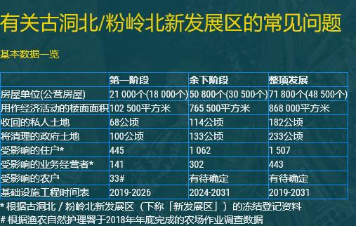 香港新界靠近深圳,开发度远不及港岛,且香港已有20年余没有再兴建新市镇。此次拟回收土地将用于发展新界东北部的古洞北、粉岭北新发展区,覆盖面积612公顷,涉及总人口约19.37万人,提供约4.01万个就业机会。