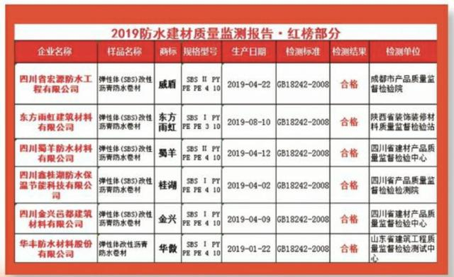 为了促进防水建材行业健康发展,也为了给消费者提供消费参考意见,消费质量报质量舆情监测报道组根据全国各地市场监管部门近几年的抽检数据,尤其是重点参考2019年1月-9月的抽检数据,发布“防水建材质量监测报告”质量红黑榜。