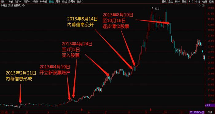 证监会罚单中列明,中青宝上述收购的内幕信息形成时间不晚于2013年2月21日,公开于2013年8月14日。