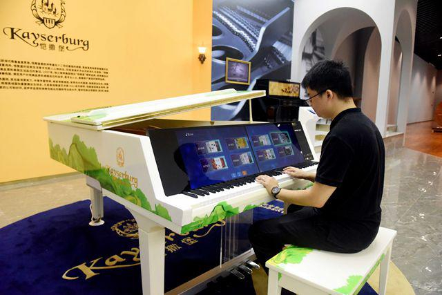 记者看到,这类钢琴可以连上Wifi,前置的大屏幕就像电脑桌面,上面有可供弹奏的曲库。即便你不会弹钢琴,也可以跟着屏幕上出现的按键来模仿,满足在线学习需求。同时,还可以实现教师与学生的远程互动,人机互动电子谱、精准实时评分、真人视频示范等。