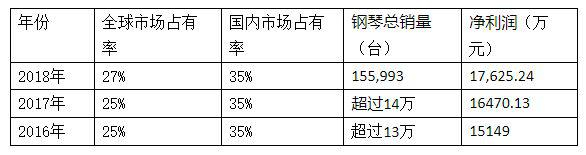 据介绍,珠江钢琴的钢琴产销量在1987年就成为国内同行第一、2002年成为全球产销第一并保持到了现在。据公开中国乐器协会最新数据,2018年珠江钢琴国内市场占有率达42%以上,全球市场占有率达30%以上。