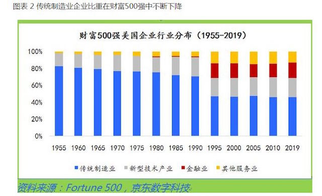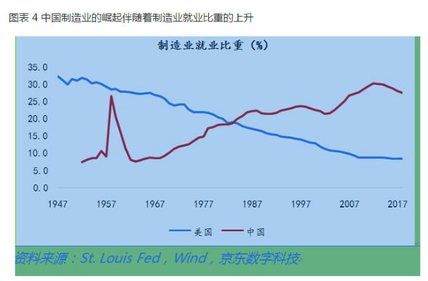 关于美国过去70年的产业变迁的因果,一个深入人心的经济学解释是,随着全球化的推进,发达国家一方面大力发展高新技术产业,保持扩大金融业的优势、保持对跨国资本的掌控,另一方面加速中低端制造业的全球化转移和布局;而新兴发展中国家有人力成本优势,承接发达国家的落后产能,以劳动密集型产业为起点实现工业化。