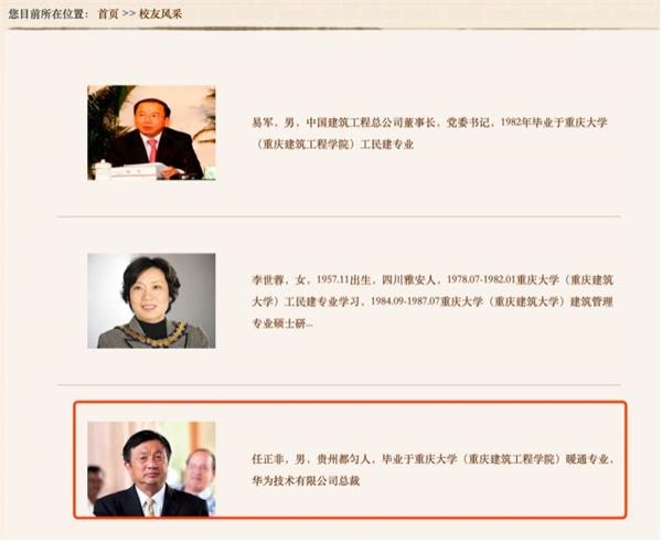 首先,在重庆大学建筑学部官网上,在校友风采一栏中,挂着任正非的照片。