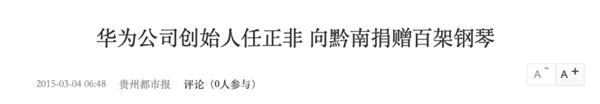 任正非向家乡捐献钢琴的一篇报道(来源:贵州都市报)